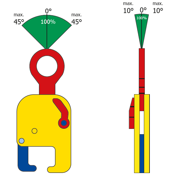 - Immer mit einem Sicherheitsmechanismus ausgestattet, der sicherstellt, dass die Klemme beim Anlegen von Hebekraft und beim Absenken der Last nicht verrutscht